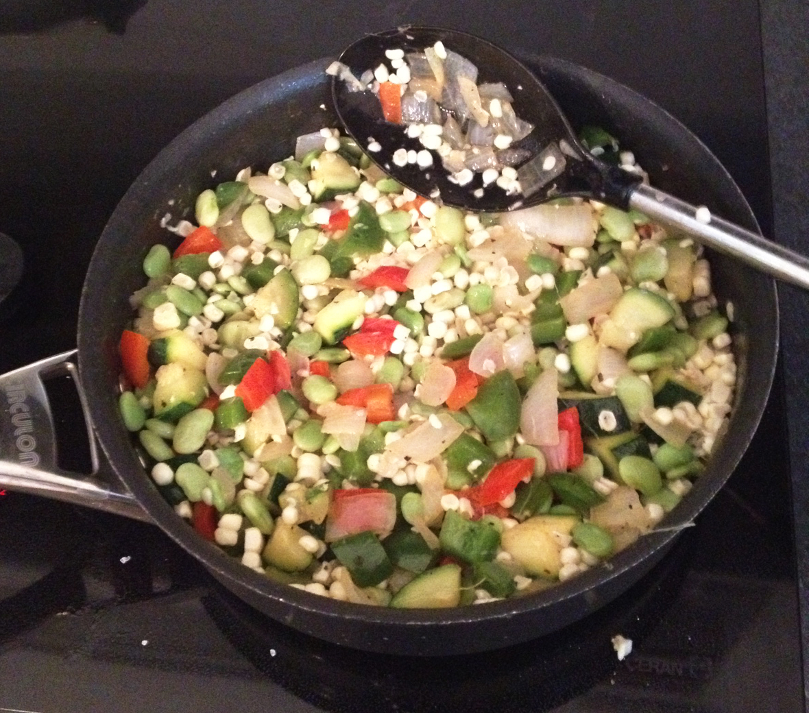The original succotash was introduced by American Indians in the 1600’s. The name was derived from the Narragansett Indian word msickqqustash, meaning boiled corn. I’m not quite certain what they call it in Cabo, but corn is an obvious staple of Mexico; so, here we go! Last month at Diamante, the posse and I enjoyed poolside time, strict studying and taking notes while “reading” Audible books, the occasional margarita, wild golf cart rides around the property, and then back to the villa for cooking dinner. This is one sweet and spicey version of succotash that we concocted. It may be served warm, room temp, or even chilled…your choice! Take a look! PS. We served it with a grilled shrimp, and lime and honey fruit. That’s coming to you tomorrow right here! Stay tuned.